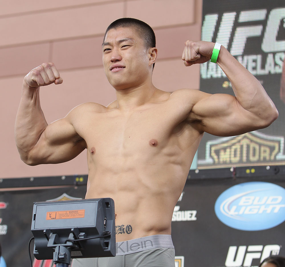 “Stun Gun” Dong Hyun Kim, 34, is the second South Korean fighting in the UFC but first to win a match. Joining in 2008, he won “Knockout of the Night” against Erick Silva and “Performance of the Night” for his TKO against John Hathaway. Until his defeat in 2011, he was on a winning streak and his current record stands at 22-3-1, 1NC.